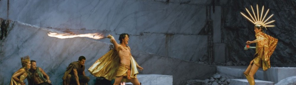 The initial image is of the mighty Titans, who in Greek lore are the greatest threat to the Gods.  Here they are dwarfed down to human size as opposed to the mighty renditions in the Disney version of Hercules or the God of War video games.  There is a lightning-quick battle between them and Zeus’ crowd, though that King of the Gods is missing his thunderous super powers as well.